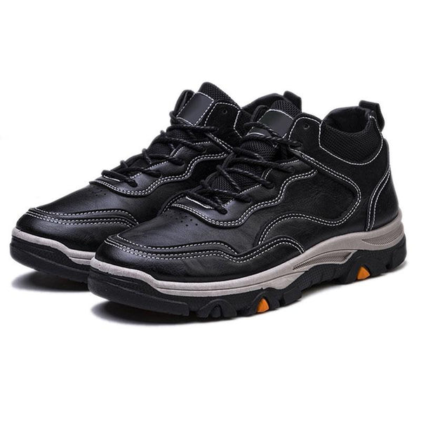 Men Outdoor Hiking Casual Leather Shoes Thickened Non-Slip Waterproof Sneakers, Size: 42(Black)