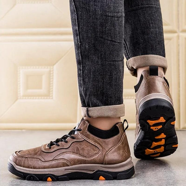 Men Outdoor Hiking Casual Leather Shoes Thickened Non-Slip Waterproof Sneakers, Size: 43(Brown)