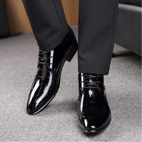 Men Pointed Glossy Crocodile Texture Leather Shoes, Shoe Size:39(Black)