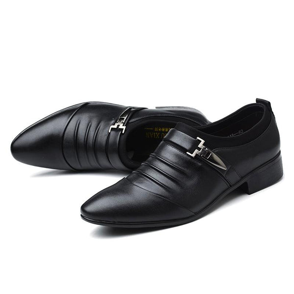 Men Set Business Dress Shoes PU Leather Pointed Toe Oxfords Shoes, Size:39(Black)