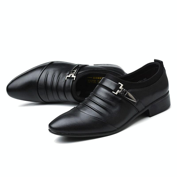 Men Set Business Dress Shoes PU Leather Pointed Toe Oxfords Shoes, Size:41(Black)