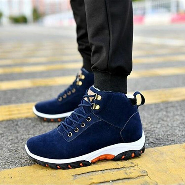 Men Snow Boots Warm Fur Winter Boots Men Winter Boots, Shoe Size:43(Blue)
