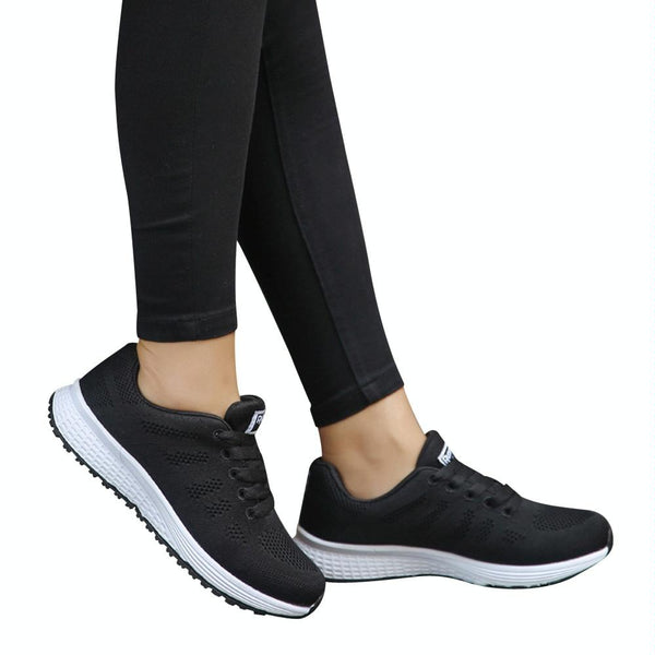 Mesh Breathable Flat Sneakers Running Shoes Casual Shoes for Women, Size:36(Black)