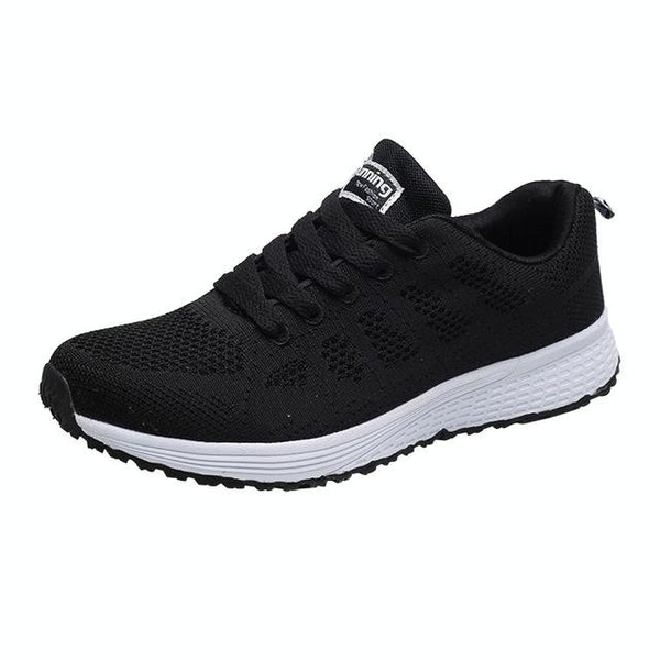 Mesh Breathable Flat Sneakers Running Shoes Casual Shoes for Women, Size:38(Black)