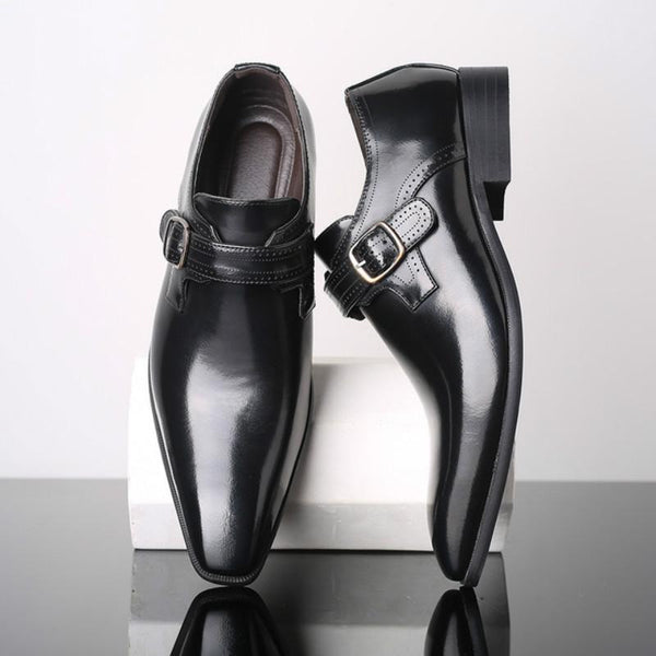 Pointed British Style Men Leather Shoes Buckle Low Heel Shoes, Size:48(Black)