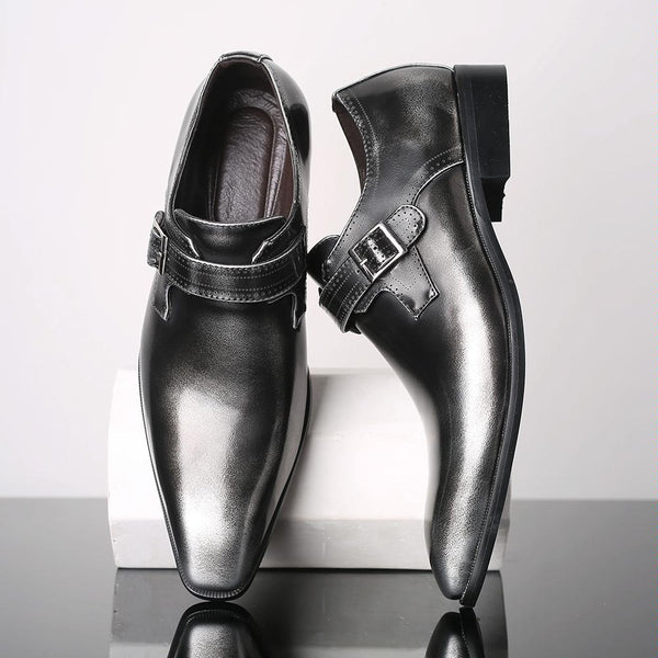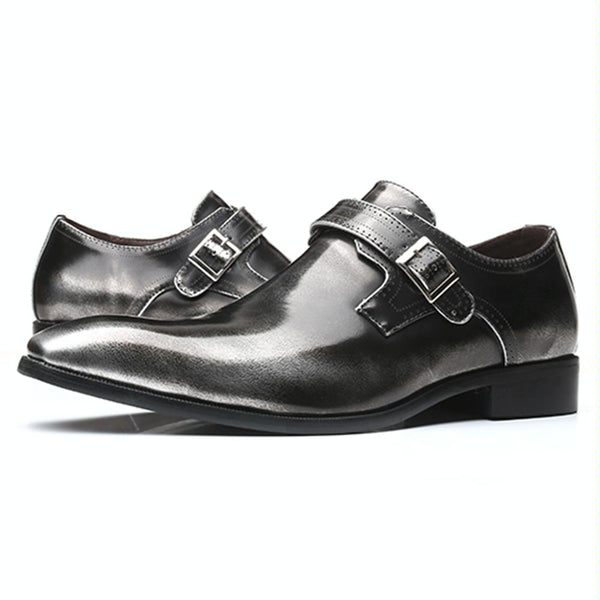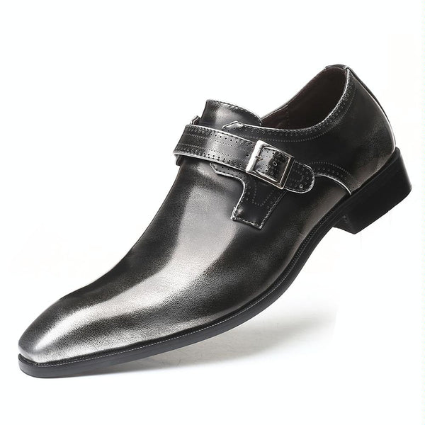 Pointed British Style Men Leather Shoes Buckle Low Heel Shoes, Size:48(Tin Grey)