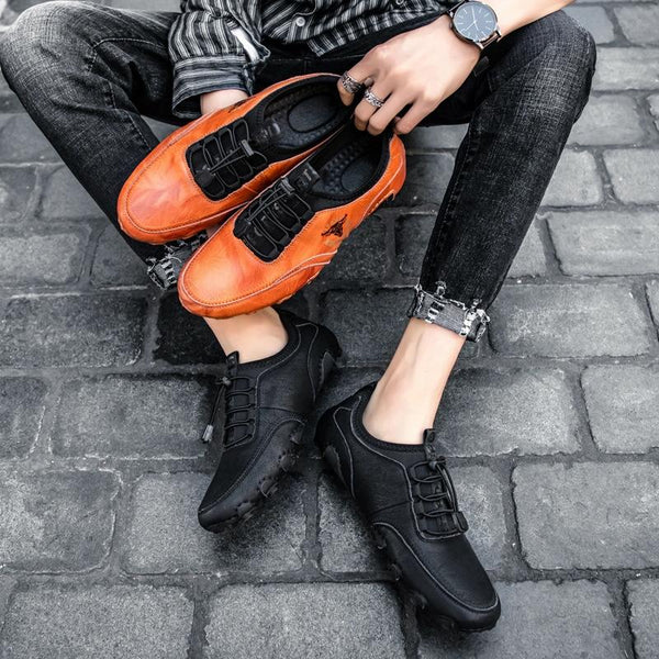 Spring And Summer Men Casual Octopus Peas Lazy Shoes Breathable Leather Shoes, Size: 47(Brown)