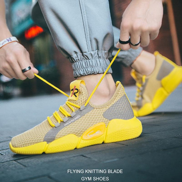 Spring Breathable Running Shoes Couple Models Student Casual Shoes Flying Woven Sports Shoes, Size: 39(Yellow)