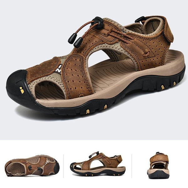 Summer Large Size Men Beach Shoes Leather Breathable Wading Casual Sandals, Size: 43(Dark Brown)
