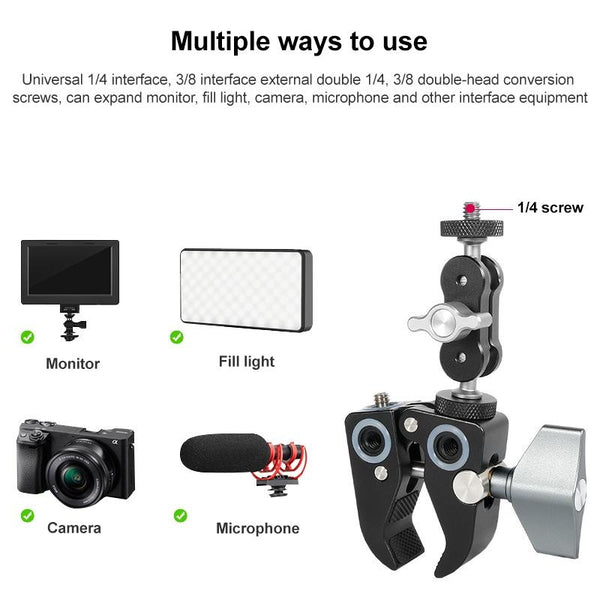 6. This is mutifunctional U type clamp, it is useful tool especially for holding LCD field monitor and DSLR cameras. You also can hold camera, lights, umbrellas, hooks, shelves, plate glass, cross bars, even other super clamps.