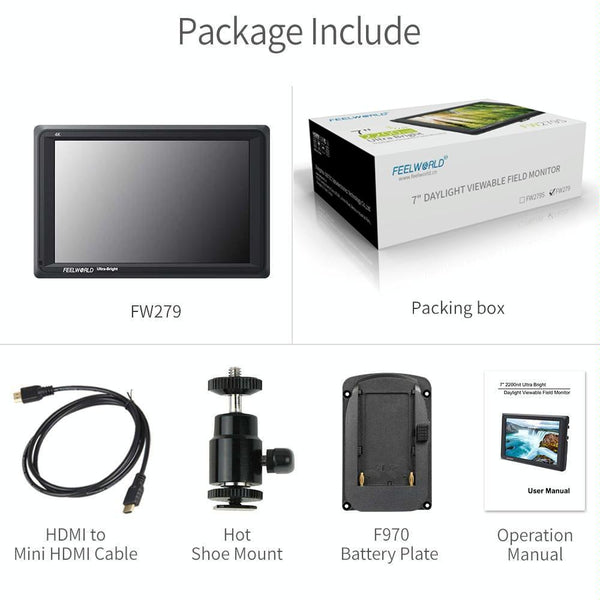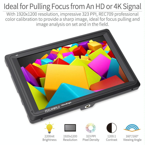 FEELWORLD FW279 7 Inch Ultra Bright 2200nit on Camera Field DSLR Monitor Full HD 1920x1200 4K HDMI Input Output High Brightness for DSLR Stablizer