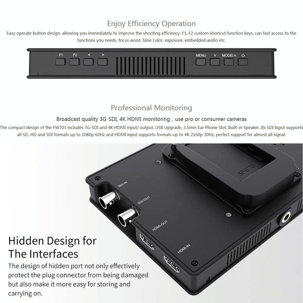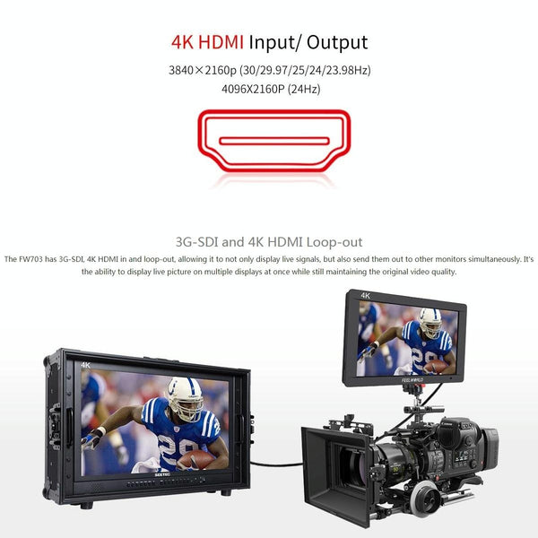 FEELWORLD FW703 1920x1200 7 inch IPS Screen HDMI 4K SDI Broadcast Camera Field Monitor
