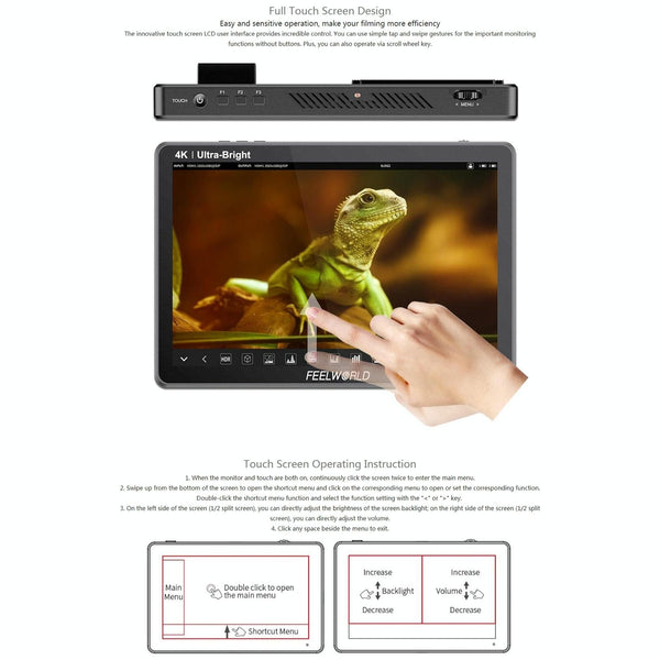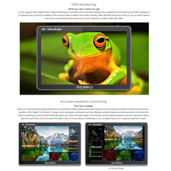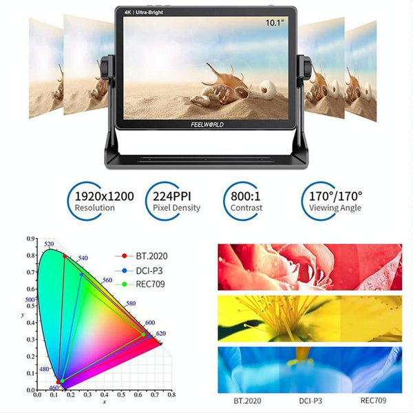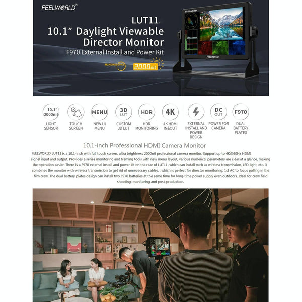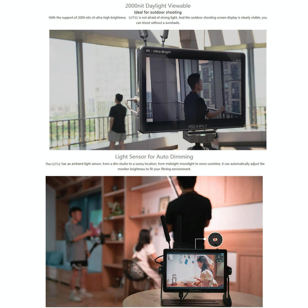 FEELWORLD LUT11 10.1 inch Ultra High Bright 2000nit Touch Screen DSLR Camera Field Monitor, 4K HDMI Input Output 1920 x 1200 IPS Panel(US Plug)