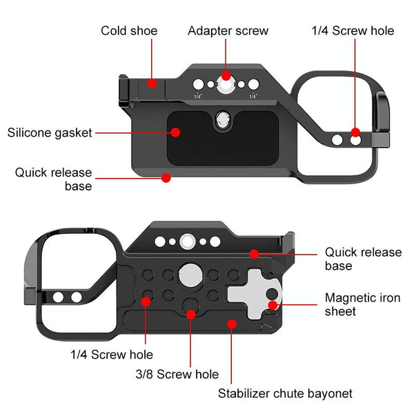 5. There are many holes on the cage to connect other accessories, which can be used with an external monitor, follow focus, tripod, microphone, etc.
