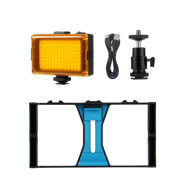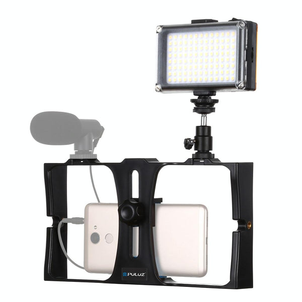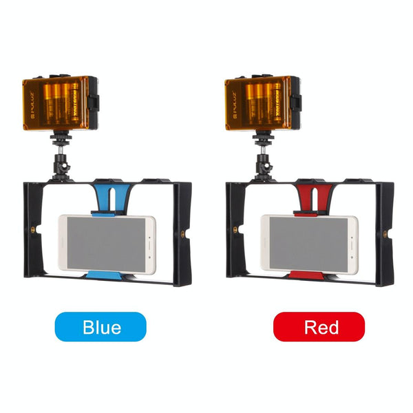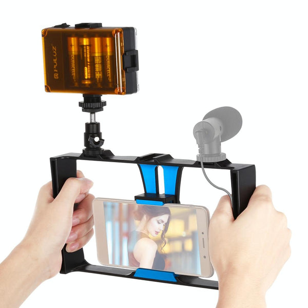 PULUZ 2 in 1 Vlogging Live Broadcast LED Selfie Light Smartphone Video Rig Kits with Cold Shoe Tripod Head for iPhone, Galaxy, Huawei, Xiaomi, HTC, LG, Google, and Other Smartphones(Blue)