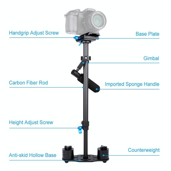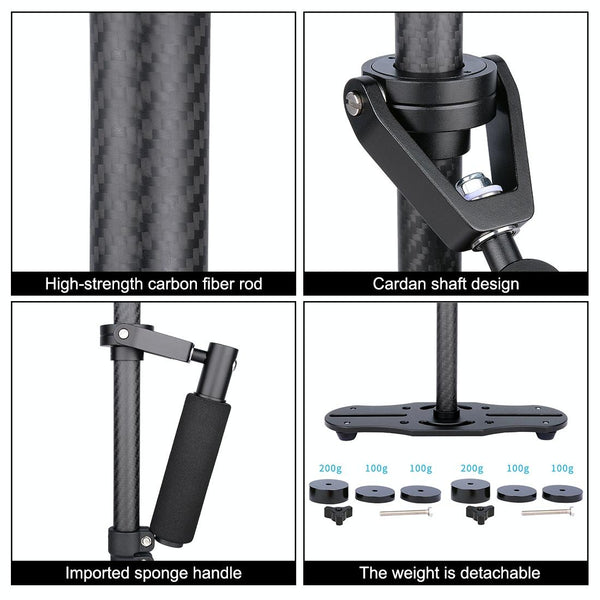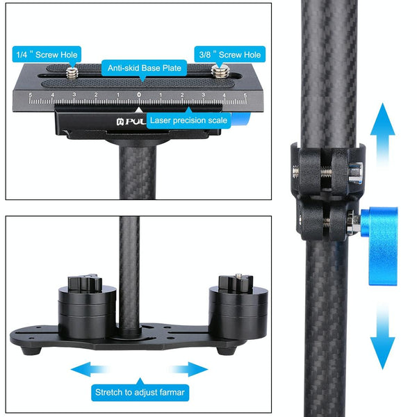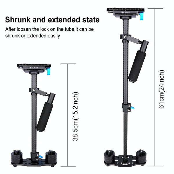 PULUZ 38.5-61cm Carbon Fibre Handheld Stabilizer for DSLR & DV Digital Video & Cameras, Load Range: 0.5-3kg(Black)