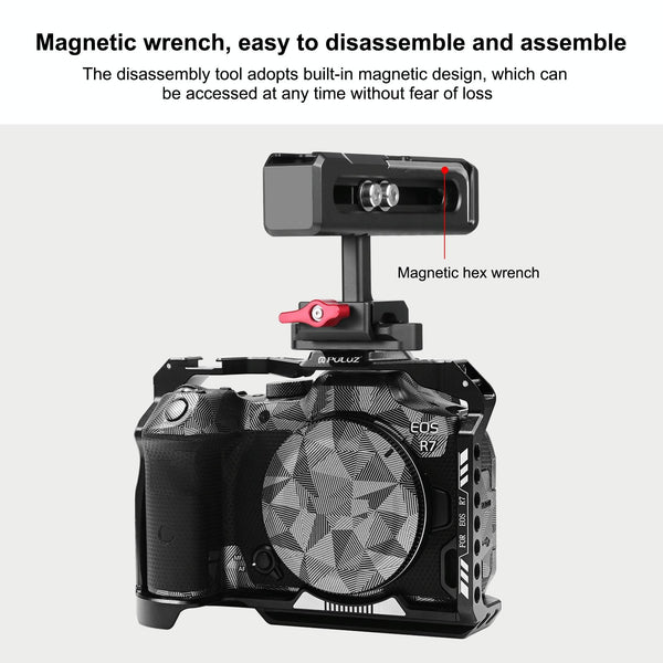 1. Handle grip: Sliding top cheese handle for moving shoots, compatibility with camera cages. It is designed for quick release attaching and detaching on the camera without screws.