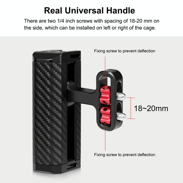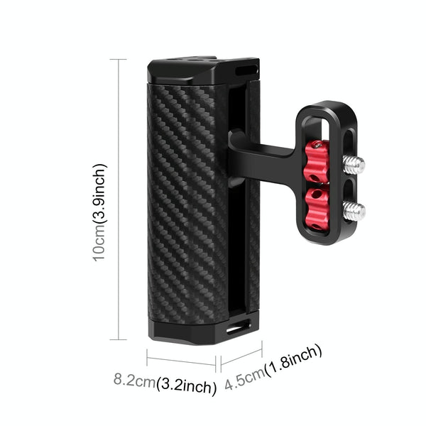 3. The side handle features a cold shoe on the top to mount microphone and led light, also 1/4 inch threaded holes on the top for accessories such as magic arm, ballhead, monitor mount, etc.