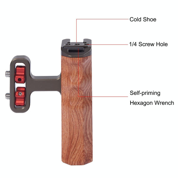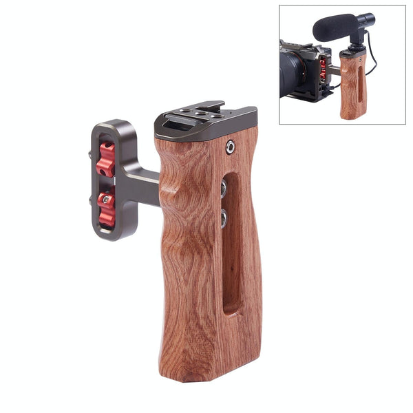 PULUZ Universal Side Wooden Handle Handgrip with Cold Shoe for DSLR Camera Cage(Bronze)