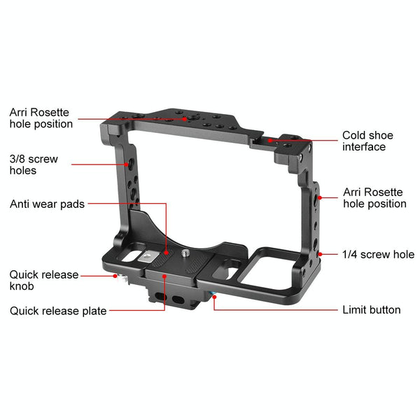 2. Stanble And Protection: The cage secures the camera via a 1/4 inch-20 screw on the bottom to further prevent twisting, rubber pads on the bottom protect your camera body from scratching.