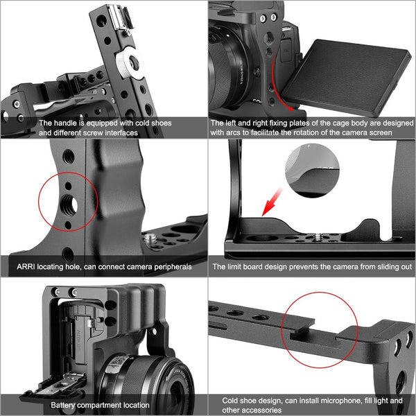2. The base of the cage is equipped with limit plate to prevent the camera drop.