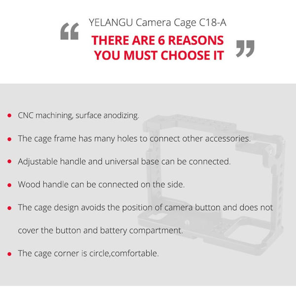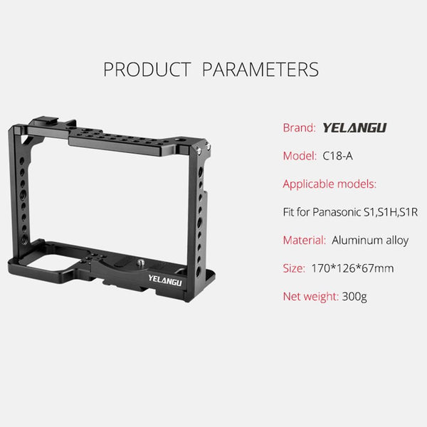 YELANGU C18 YLG0915A-A Video Camera Cage Stabilizer for Panasonic Lumix DC-S1H / DC-S1 / DC-S1R (Black)