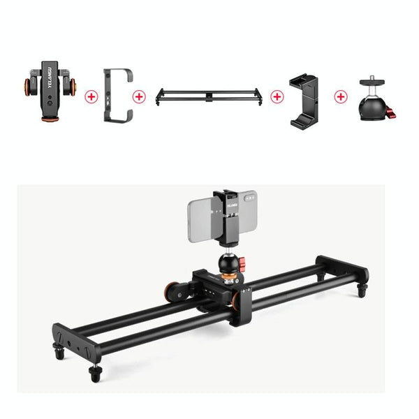 YELANGU L60E 60cm Slide Rail Track + L4 3-Wheel Video Dolly with PC142 Phone Clamp & Ballhead