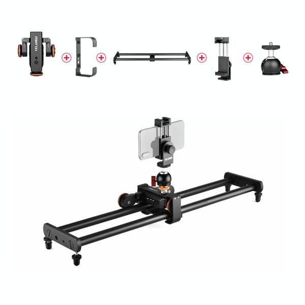 YELANGU L60E 60cm Slide Rail Track + L4 3-Wheel Video Dolly with Phone Clamp & Ballhead