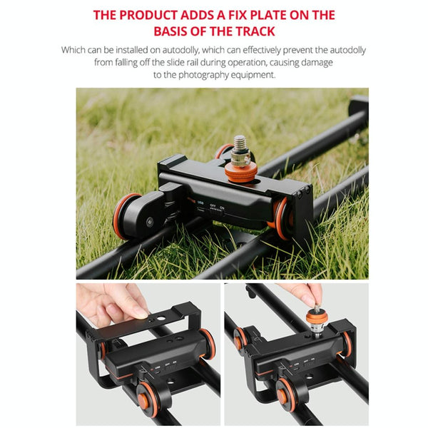 13. The product is added with a buckle on the basis of the track, which can be installed on the trolley, which can effectively prevent the trolley from falling off the slide rail during operation, causing damage to the photographic equipment 14. The product slide rail pipeline is composed of three parts spliced , Removable, you can choose the length of the slide rail independently, and the effective stroke is 62cm. Portable and easy to assemble