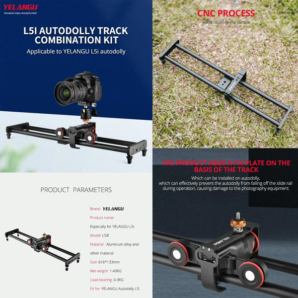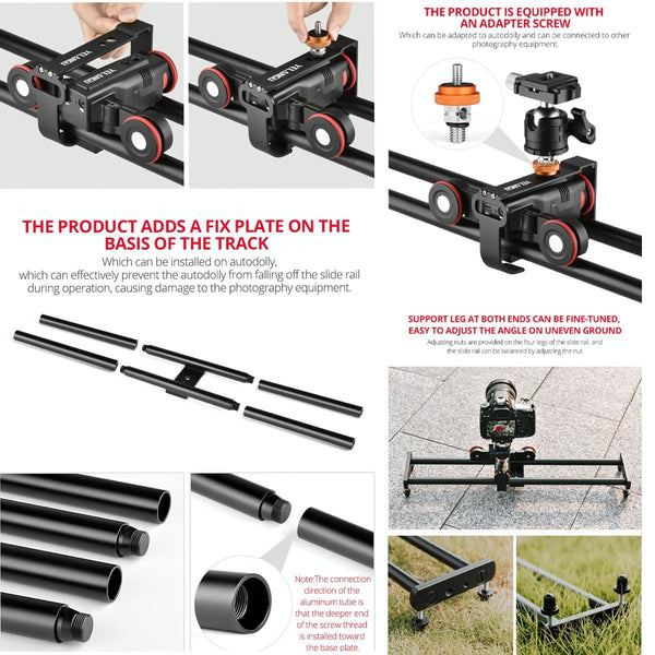 2. The product adds a fix plate the basis of the track , which can be installed on autodolly , which can effectively prevent the autodolly from falling off the slide rail during operation , causing damage to the photography equipment . The product slide rail pipeline is composed of three parts spliced, detachable, the length of the slide rail can be selected independently, and the effective distance is 62cm. Easy to carry and assemble .