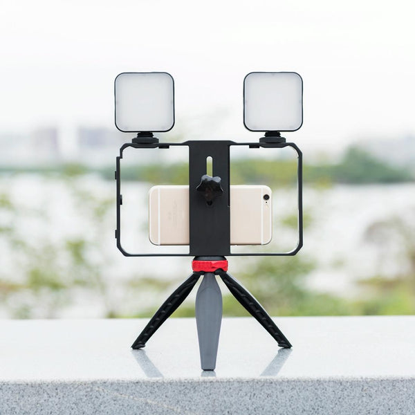 YELANGU PC203 YLG1801C Vlogging Live Broadcast LED Selfie Light Smartphone Video Rig Handle Stabilizer Plastic Bracket Tripod Kits