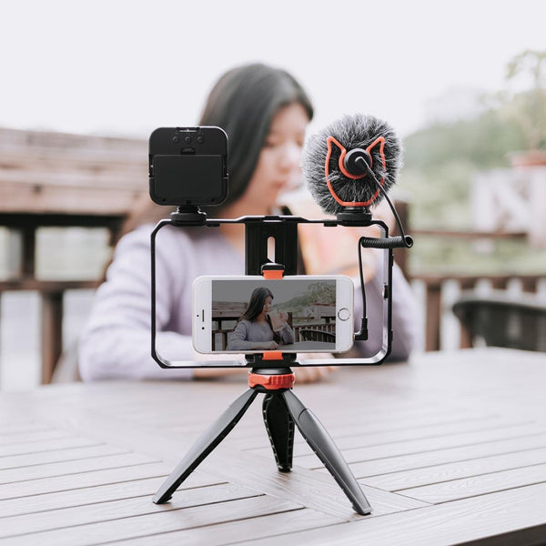 YELANGU PC204 YLG1801D Vlogging Live Broadcast LED Selfie Light Smartphone Video Rig Handle Stabilizer Bracket Kits with Microphone & Tripod