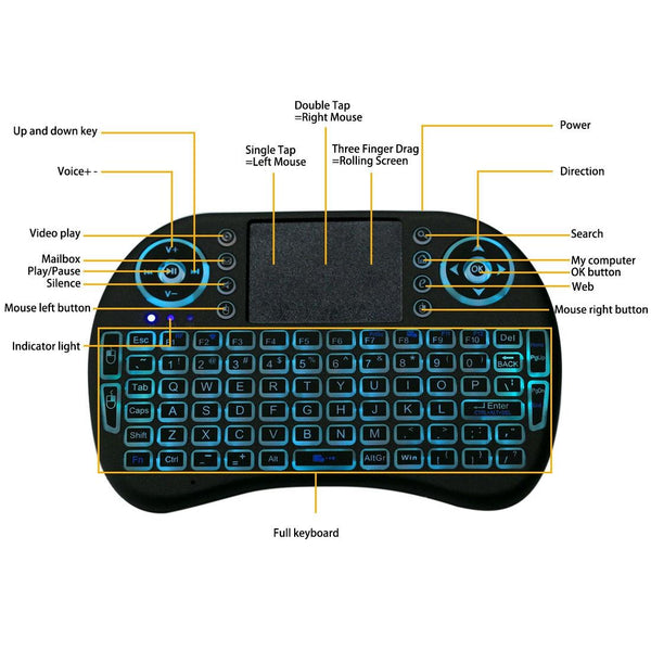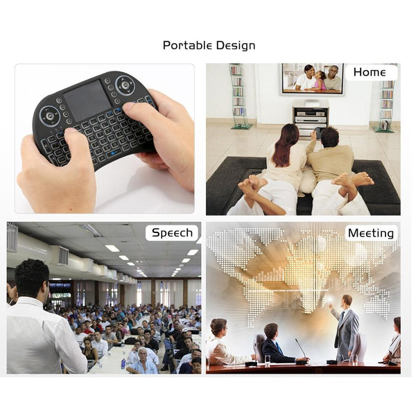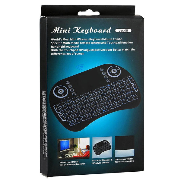 2.4GHz Mini i8 Wireless QWERTY Keyboard with Colorful Backlight & Touchpad & Multimedia Control for PC, Android TV BOX, X-BOX Player, Smartphones(Black)