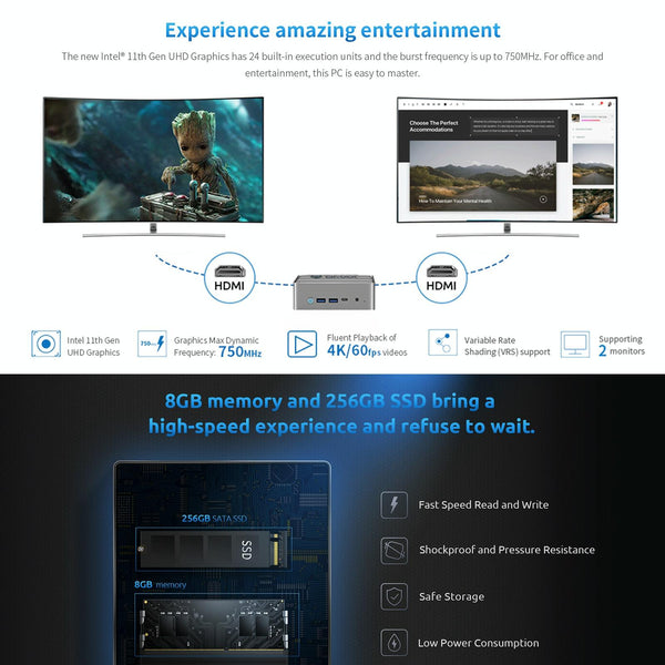 2. GPU: Intel Graphics UHD 550 750MHz, Support4K 60Hz