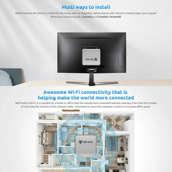 BMAX B3 Windows 11 Mini PC, 8GB+256GB, Intel Jasper Lake N5095, Support HDMI / RJ45 / TF Card, EU Plug(Space Grey)
