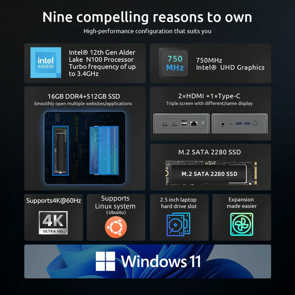 1. CPU: Intel Alder Lake N100, burst frequency up to 3.4GHz