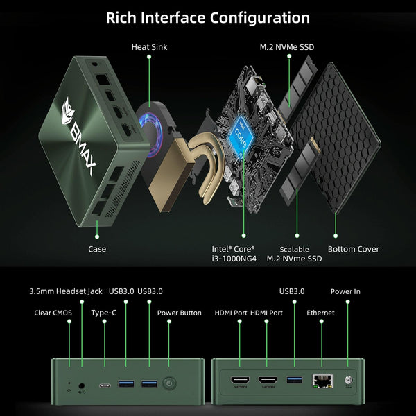BMAX B6 Plus Windows 11 Mini PC, 12GB+512GB, Intel Core i3-1000NG4, Support HDMI / RJ45, EU Plug