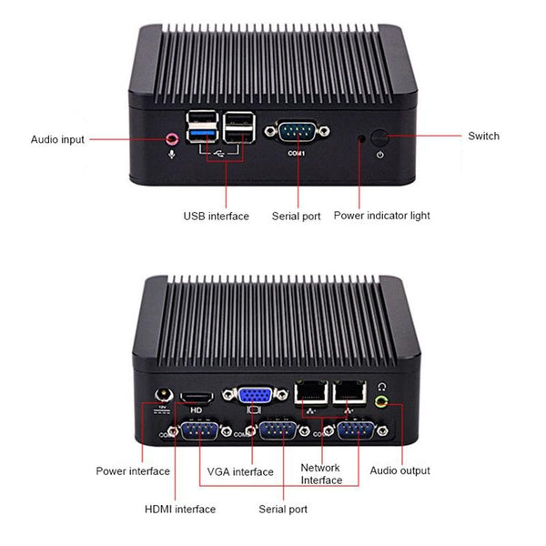 Fanless Mini Industrial Control PC with 4 USB Ports & RS-232 COM Port, 8GB RAM, Intel Celeron N2920 2.0GHz Quard Core, Support Bluetooth 4.0 & 2.4G / 5.0G Dual-band WiFi(Black)