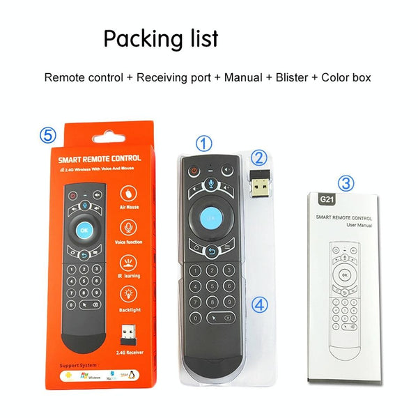 G21 2.4GHz Fly Air Mouse LED Backlight Wireless Keyboard Remote Control with Gyroscope for Android TV Box / PC, Support Intelligent Voice (Orange)