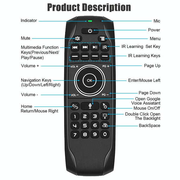 G7V Pro 2.4GHz Fly Air Mouse LED Backlight Wireless Keyboard Remote Control with Gyroscope for Android TV Box / PC, Support Intelligent Voice