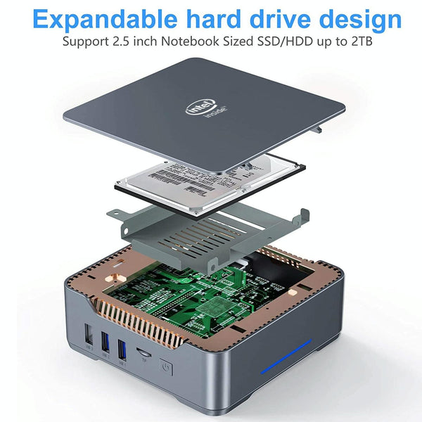 GK3V Windows 11 Pro Mini PC, Intel Gemini Lake J4125, Memory:8GB+1TB(EU Plug)
