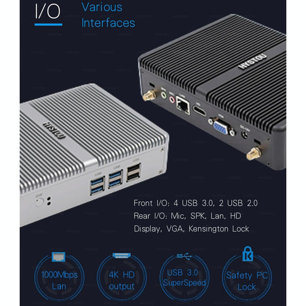 HYSTOU H2 Windows / Linux System Mini PC, Intel Core I3-7167U Dual Core Four Threads up to 2.80GHz, Support mSATA 3.0, 8GB RAM DDR4 + 256GB SSD (Black)