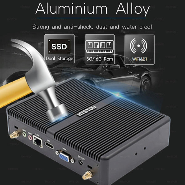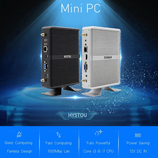 HYSTOU H2 Windows / Linux System Mini PC, Intel Core I5-7267U Dual Core Four Threads up to 3.50GHz, Support mSATA 3.0, 8GB RAM DDR3 + 256GB SSD 500GB HDD (Black)
