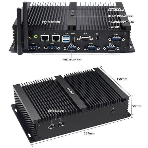 5. Ports: 1xpower on/off switch, 2xUSB3.0, 2xUSB2.0, 1xVGA, 1xHD, 1xAudio port, 1x DC-in, 2xRJ45, 4xRS232 port, 2xRS485 port