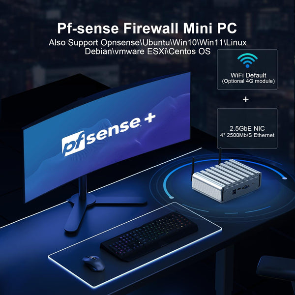 HYSTOU PO9B-J4125-4L Embedded Intel Celeron J4125 Processor Four Network Ports Mini Host, Specification:4GB+64GB