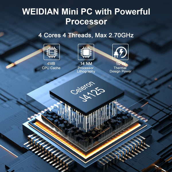 4. CPU: Intel Celeron J4125 (4M cache, base frequency 2.0 GHz up to 2.70 GHz 4 cores 4 threads)