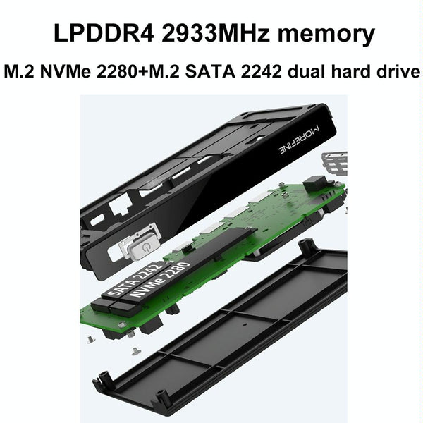 2. LPDDR4 2933MHz memory, M.2 NVMe 2280+M.2 SATA 2242 dual hard drives