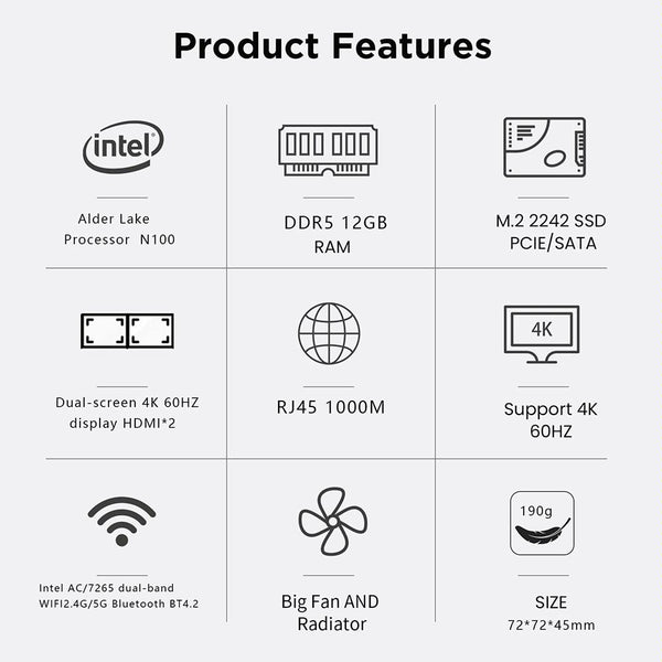N100/DDR5 12th AlderLake-N100 Dual 4K60Hz Office And Home Mini PC, Spec: 12G+128G /UK Plug