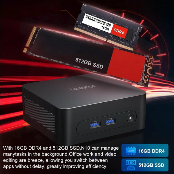 Ninkear N10 Windows 11 Bluetooth 4.2 Mini PC, 16GB+512GB, Intel Processor N100 Alder Lake-N(EU Plug)