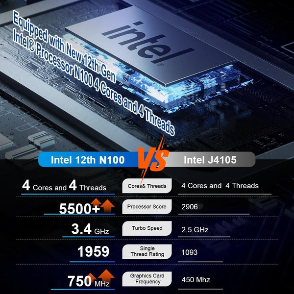 2. Intel Processor N100 Alder Lake-N 4 Cores 4 Threads up to 3.4GHz.